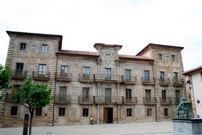 Las calles del centro medieval de Avilés conectan varias plazas con edificios históricos, incluyendo el Palacio de Ferrara del siglo XVIII y el ayuntamiento.