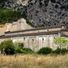 La estructura de piedra de Santa María de Obarra se encuentra en la base del valle junto al río Isábena, enmarcada por la garganta La Croqueta.