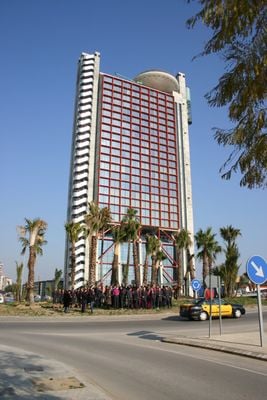 La torre funciona como punto de encuentro entre viajeros de negocios internacionales y residentes locales, ofreciendo espacios para conferencias y reuniones.