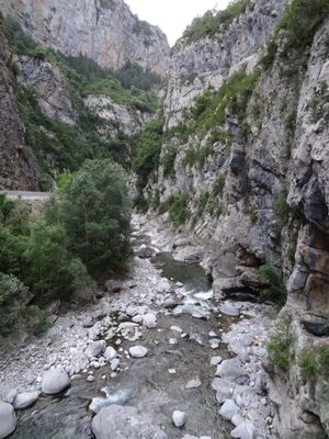 La garganta fue formada por el agua de deshielo glacial y el río Ésera durante miles de años, erosionando gradualmente la piedra caliza. Las formaciones geológicas visibles hoy son resultado de este lento proceso de desgaste fluvial.