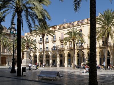 La plaza alberga el Ayuntamiento y conecta con las principales calles peatonales, funcionando como centro administrativo y punto de encuentro.