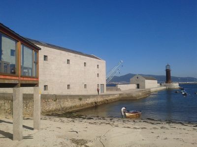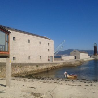 La playa de O Cocho se encuentra junto al Museo del Mar, creando un espacio costero integrado donde el patrimonio marítimo encuentra la costa natural.