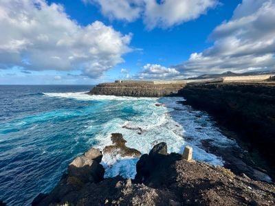 Roque Prieto, con sus 40 metros de longitud, presenta una piscina natural formada por rocas volcánicas que protegen contra las olas del Atlántico.