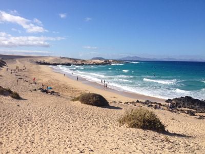 La playa combina formaciones volcánicas naturales con extensiones de arena dorada, creando secciones distintas para bañistas tradicionales y entusiastas del naturismo.