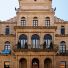 El Liceo Casino presenta arquitectura neoclásica con tres fachadas, un cuerpo central saliente y una amplia escalera en la entrada.