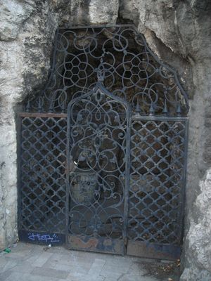 Statue of Stephen I of Hungary outside Gellért Hill Cave