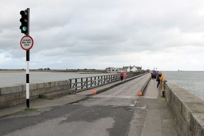 Bull Wall se extiende 3 kilómetros hacia la bahía de Dublín, con un faro en su extremo protegiendo la entrada al Puerto de Dublín.