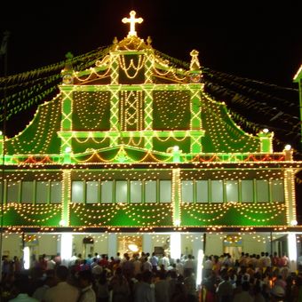 La catedral, fundada en 1678 tras un tratado entre Raja Shivappa Nayaka y autoridades portuguesas, fue reconstruida en 1881.