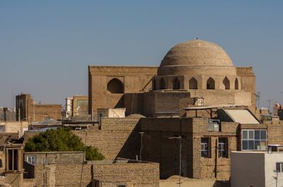 La construcción inicial data del siglo III de la Hégira, con adiciones posteriores durante los períodos Selyúcida, Safávida y Qajar que reflejan estilos arquitectónicos cambiantes.