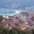 Noli es una comuna costera en el Mediterráneo en Liguria, protegida por murallas medievales de piedra que enmarcan la ciudad antigua. El centro contiene callejones estrechos que conducen a la costa, con estructuras históricas y torres distribuidas a lo largo de la orilla.