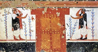 Tomb of the Augurs, Cámara funeraria etrusca en Necrópolis de Monterozzi, Tarquinia, Italia