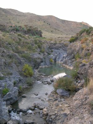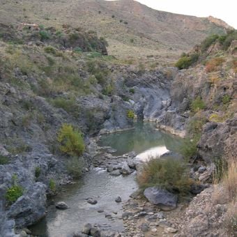 El río Simeto excavó profundas gargantas de basalto con paredes que alcanzan alturas entre 5 y 15 metros a través de antiguas coladas de lava del Etna.