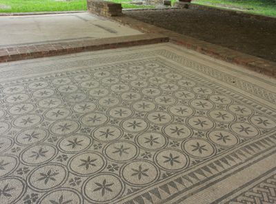 Los mosaicos con patrones geométricos adornan los pisos de la villa y muestran cómo los romanos decoraban sus casas. Los objetos encontrados en las excavaciones se exhiben en el museo junto al sitio y en el Antiquarium local de Russi.
