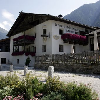 Construida hace más de 400 años, la posada Sandwirt alcanzó reconocimiento como lugar de nacimiento de Andreas Hofer, líder de resistencia tirolesa.