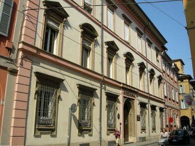 El edificio está ubicado en una intersección central de Bolonia y actualmente funciona como espacio de oficinas. El acceso al interior es limitado ya que el edificio es un lugar de trabajo activo, por lo que los visitantes deben verificar la disponibilidad antes de intentar entrar.