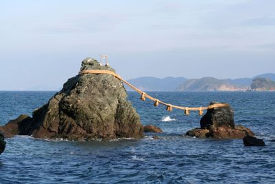 Meoto Iwa son dos formaciones rocosas en las aguas del océano cerca de la costa de Ise, unidas por gruesas cuerdas trenzadas hechas de paja de arroz. La formación más grande se eleva alrededor de 9 metros sobre el agua mientras que la más pequeña mide aproximadamente 4 metros, y ambas son consideradas un par sagrado en la tradición.