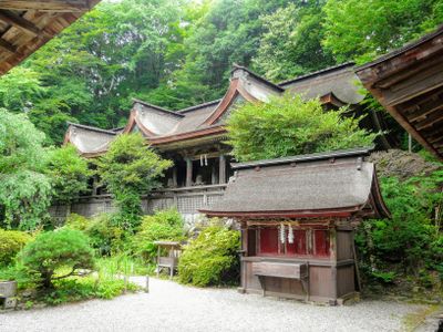 El santuario consagra seis deidades relacionadas con mikumari, incluyendo una estatua de madera de Tamayori-hime registrada como Tesoro Nacional de Japón.