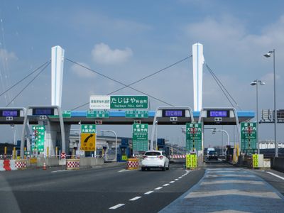 El peaje de Tajihaya es un puesto de cobro en la Carretera Minami-Hanna en Sakai con varios carriles para procesar vehículos. La instalación funciona como un paso importante que conecta las prefecturas de Osaka y Nara a través de este corredor de 16.9 kilómetros.