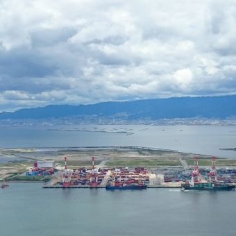La superficie reclamada de 390 hectáreas en la Bahía de Osaka incluye terminales de contenedores, instalaciones industriales y áreas de desarrollo futuro.