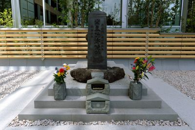El túmulo funerario se encuentra a poca distancia de varias estaciones de metro en Ōtemachi, con placas informativas en japonés que explican su contexto.