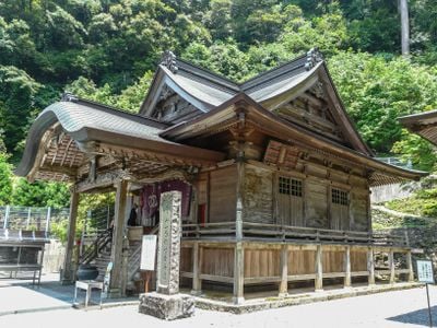 El templo requiere una exigente caminata cuesta arriba por terreno montañoso, con autobuses locales que conectan desde la estación de Yasuda.