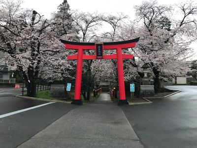 El santuario presenta estructuras tradicionales de madera con una puerta torii que marca la entrada a sus terrenos sagrados.
