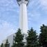 La estructura de hormigón armado se eleva 107 metros sobre el Parque Goryokaku, con seis plantas de observación con paredes de cristal.