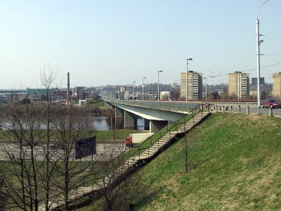 Construido en 1983, este puente reemplazó el puente temporal Eiguliai que conectaba los barrios de Vilijampolė y Žaliakalnis antes de la Segunda Guerra Mundial.