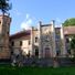 La Mansión de Šķēde presenta una estructura de mampostería de varios pisos con una torre en la esquina y alas extendidas.