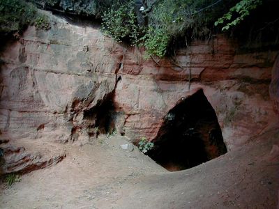 Dos cuevas de 46 y 19.5 metros de longitud emergen de formaciones de arenisca del Devónico Medio en las orillas del río Svētupe.