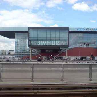 Bimhuis es una sala de conciertos y edificio de teatro en Ámsterdam con una estructura de caja negra característica y grandes ventanales hacia el puerto. Los espacios interiores están diseñados específicamente para la acústica y permiten diversos tipos de actuaciones en vivo.