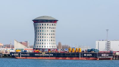 El diseño del edificio por KOW Architects incorpora principios de arquitectura industrial holandesa mientras mantiene la funcionalidad para el sector marítimo.