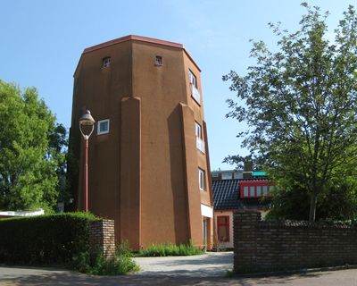 Expressionistisch woningcomplex met bakstenen muurtjes