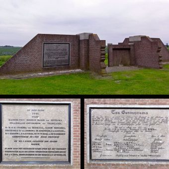 Kop-hals-rompboerderij met voorhuis met omgaande goot onder zadeldak tussen puntgevels met schoorstenen waarop borden