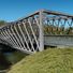 La estructura del puente gira 90 grados de extremo a extremo, creando una orientación horizontal en los extremos y una forma de diamante en el centro.