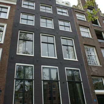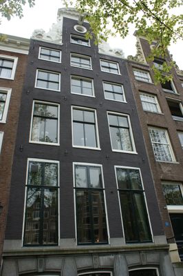Pand met halsgevel met dolfijnen als vleugelstukken, Rijksmonument op Herengracht 526