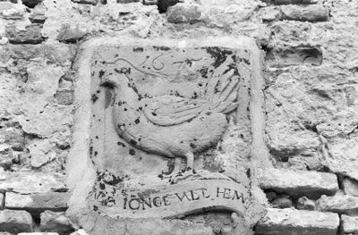 Lijstgevel. Huis van parterre en verdieping. Deuromlijsting met verdiepte pilasters, gesneden deur en consoles onder de kroonlijst Lod. XIV