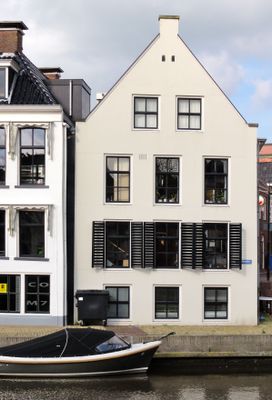 Wit gepleisterde achtergevel met puntgevel aan Turfmarkt
