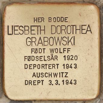 Stolperstein en memoria de Liesbeth Dorothea Grabowski, f. Wolff, stolperstein in Trondheim, Noorwegen