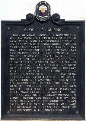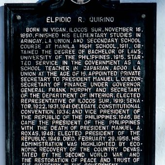 Elpidio R. Quirino historical marker, NHI historical marker for Elpidio Quirino in Vigan, Ilocos Sur