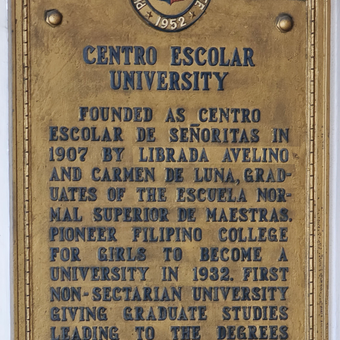 Centro Escolar University historical marker, PHC historical marker for Centro Escolar University
