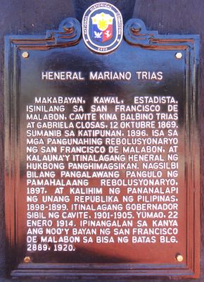 General Mariano Trias historical marker, NHCP historical marker for Mariano Trías