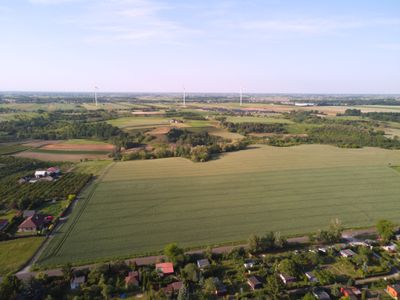 El municipio se extiende por 76 kilómetros cuadrados de terreno variado, con tierras agrícolas y bosques mixtos junto al río Vístula.