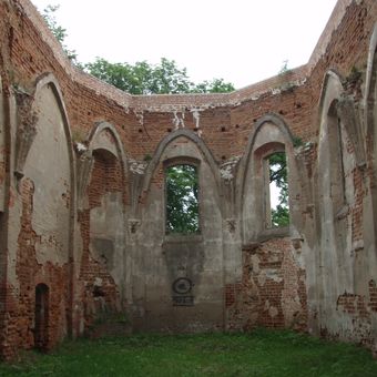 La Iglesia de la Decapitación de San Juan Bautista presenta arcos apuntados y trabajos en piedra que muestran elementos arquitectónicos góticos.