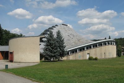 Kapelusz es una sala de exposiciones moderna en el parque familiar con un techo en forma de sombrero sostenido por arcos de acero. El interior está cubierto por estos arcos y cuenta con zonas de entrada y pabellones auxiliares.