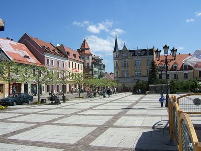 Situada en las coordenadas 49.977778 de latitud y 18.942306 de longitud, la plaza alberga tiendas, restaurantes y cafeterías.
