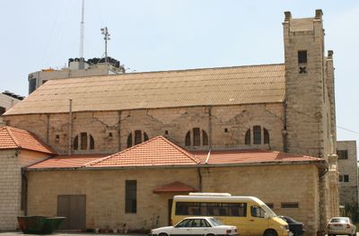 La Iglesia de la Sagrada Familia se encuentra en el centro de Ramallah con su arquitectura eclesiástica tradicional y fachada de piedra.