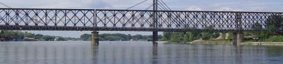 Puente viaja del ferrocarril de Belgrado, Puente ferroviario de celosía de acero sobre el río Sava, Belgrado, Serbia.