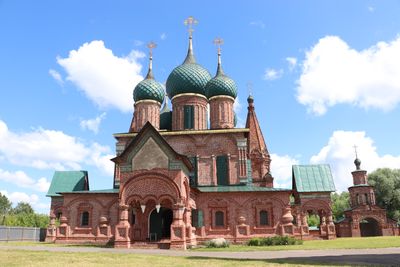 La arquitectura representa el estilo de la escuela de Yaroslavl, incorporando artesanía cerámica local y elementos del diseño eclesiástico ruso.