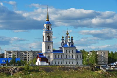 Saints Peter and Paul es un edificio de iglesia de piedra blanca con una torre de campanas de tres pisos y cinco cúpulas doradas que dominan el horizonte de Severouralsk. La estructura se eleva desde una ubicación en la cima de una colina en la calle Sverdlovsk e impresiona a los visitantes por sus proporciones y elementos arquitectónicos clásicos.